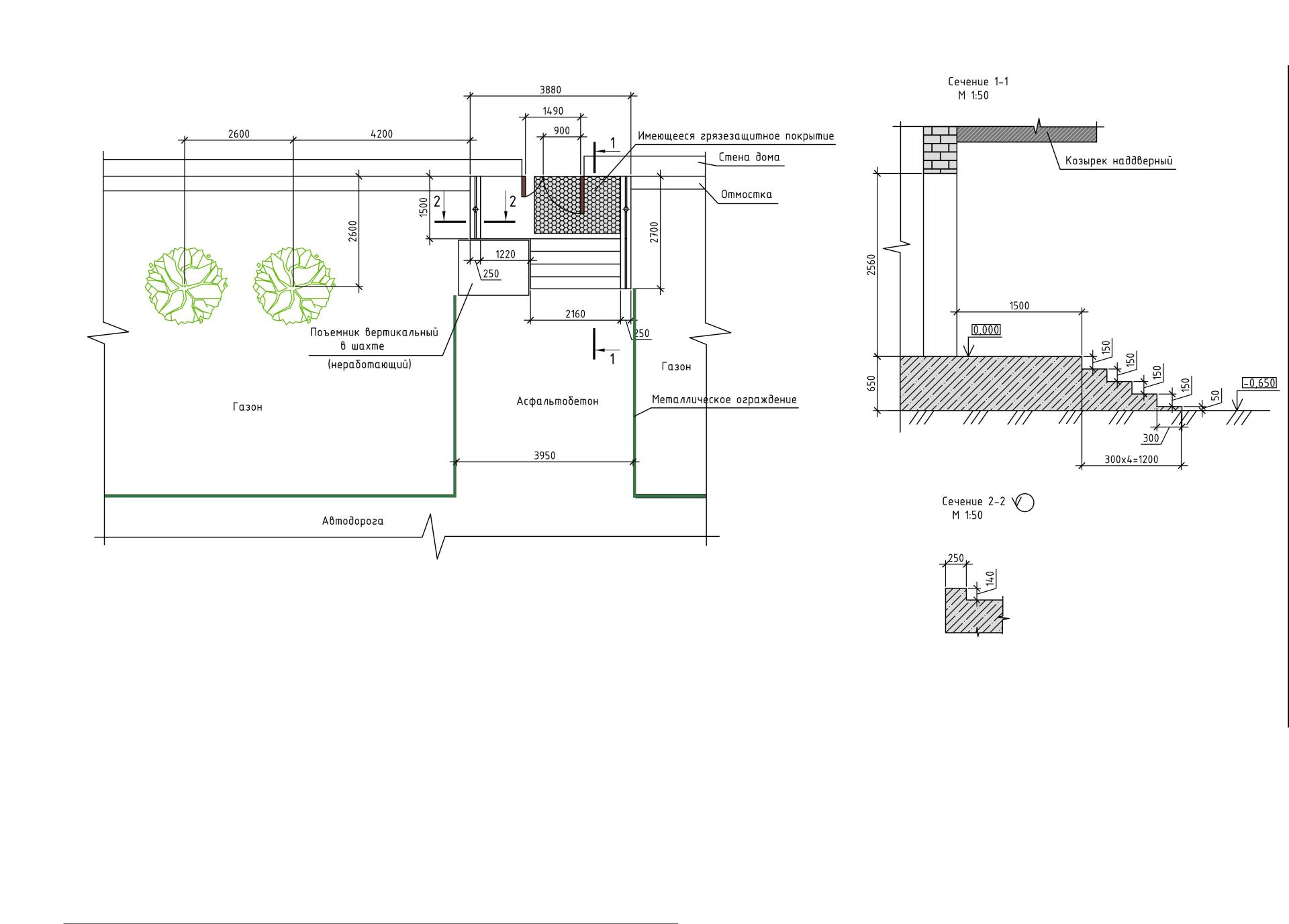 - Демонтировать часть металлического ограждения вдоль дорожки к крыльцу с левой стороны на протяжении 1900 мм.