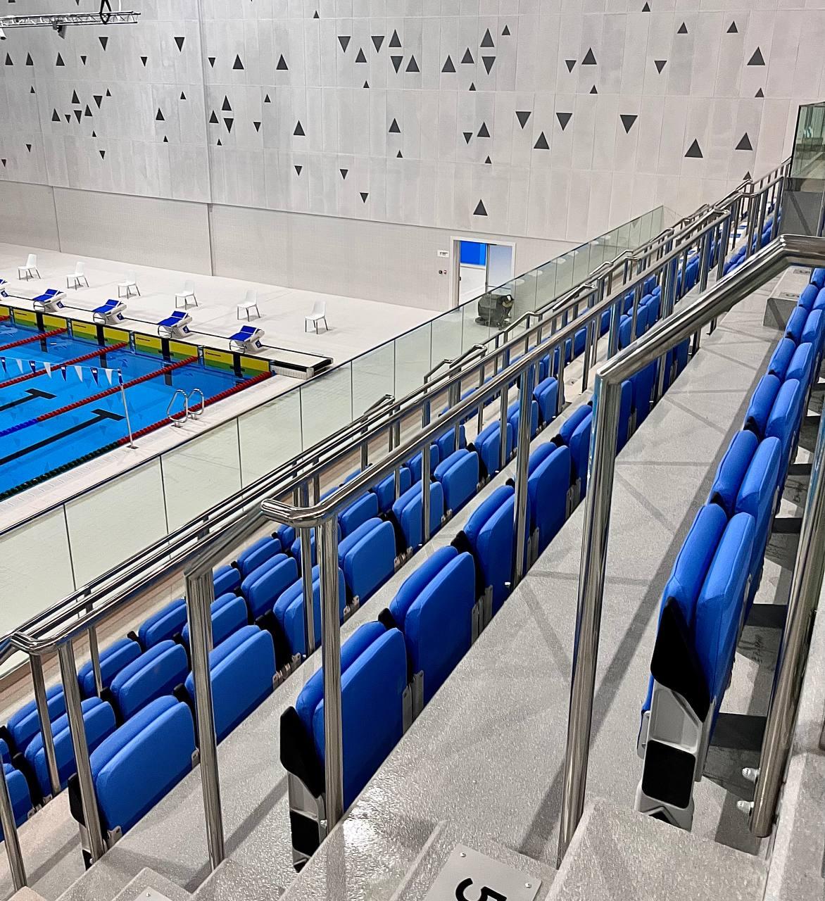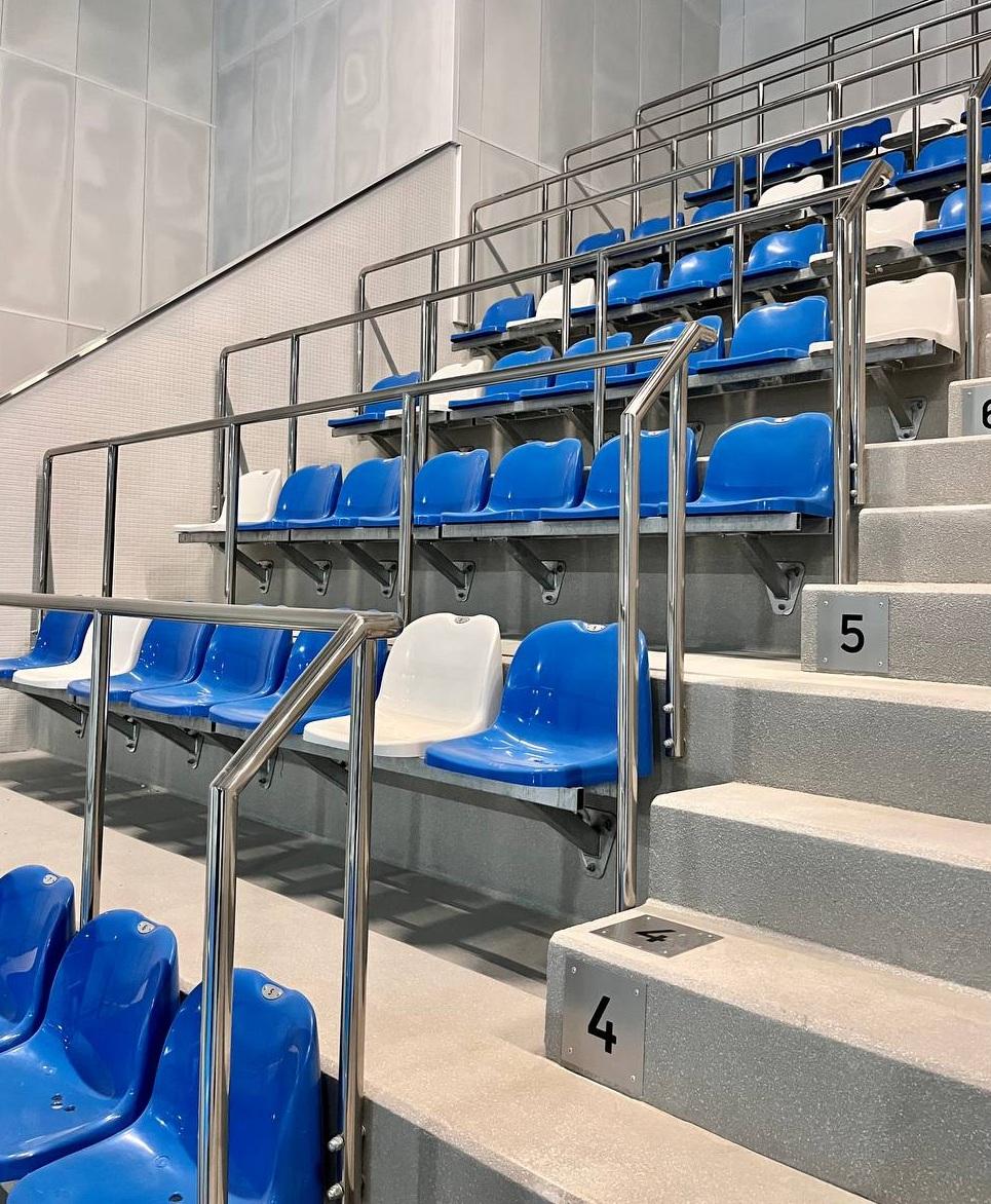 - Вдоль внешней границы обходных дорожек бассейнов для МГН есть стационарные скамьи высотой 0,5 метра.