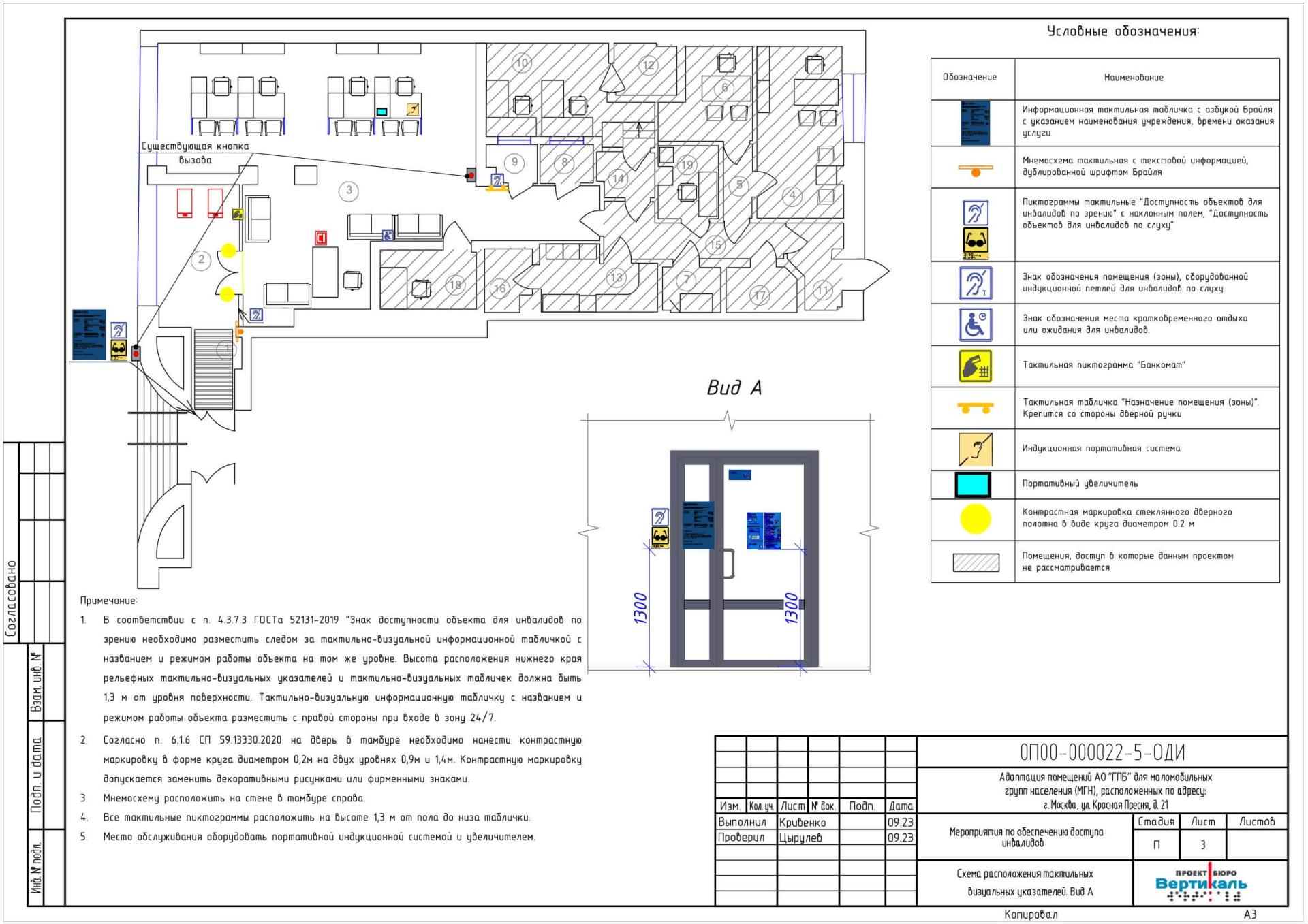 Проект для инвалидов по обеспечению доступной среды офиса АО "ГПБ", расположенного по адресу г. Москва, Красная Пресня д. 21.