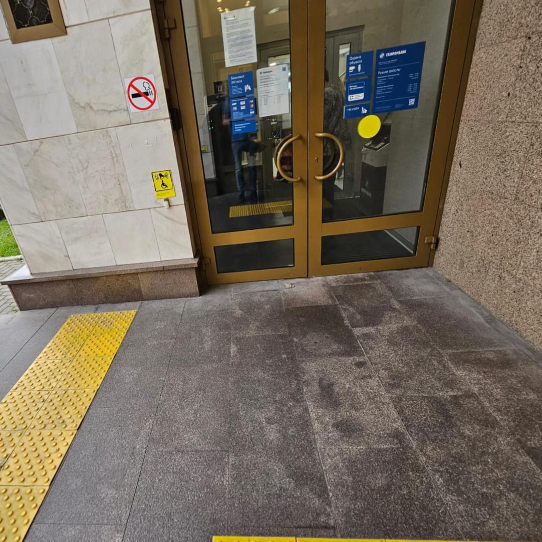 Проведенная работа в офисах Газпромбанка необходима для создания безбарьерной среды, обеспечения доступности инвалидов. Соответствие концепции доступной среды подразумевает отсутствие лестницы и единый плоский вход в здание. Если здание уже построено и убрать лестницу невозможно, для обеспечения доступности устанавливается пандус.