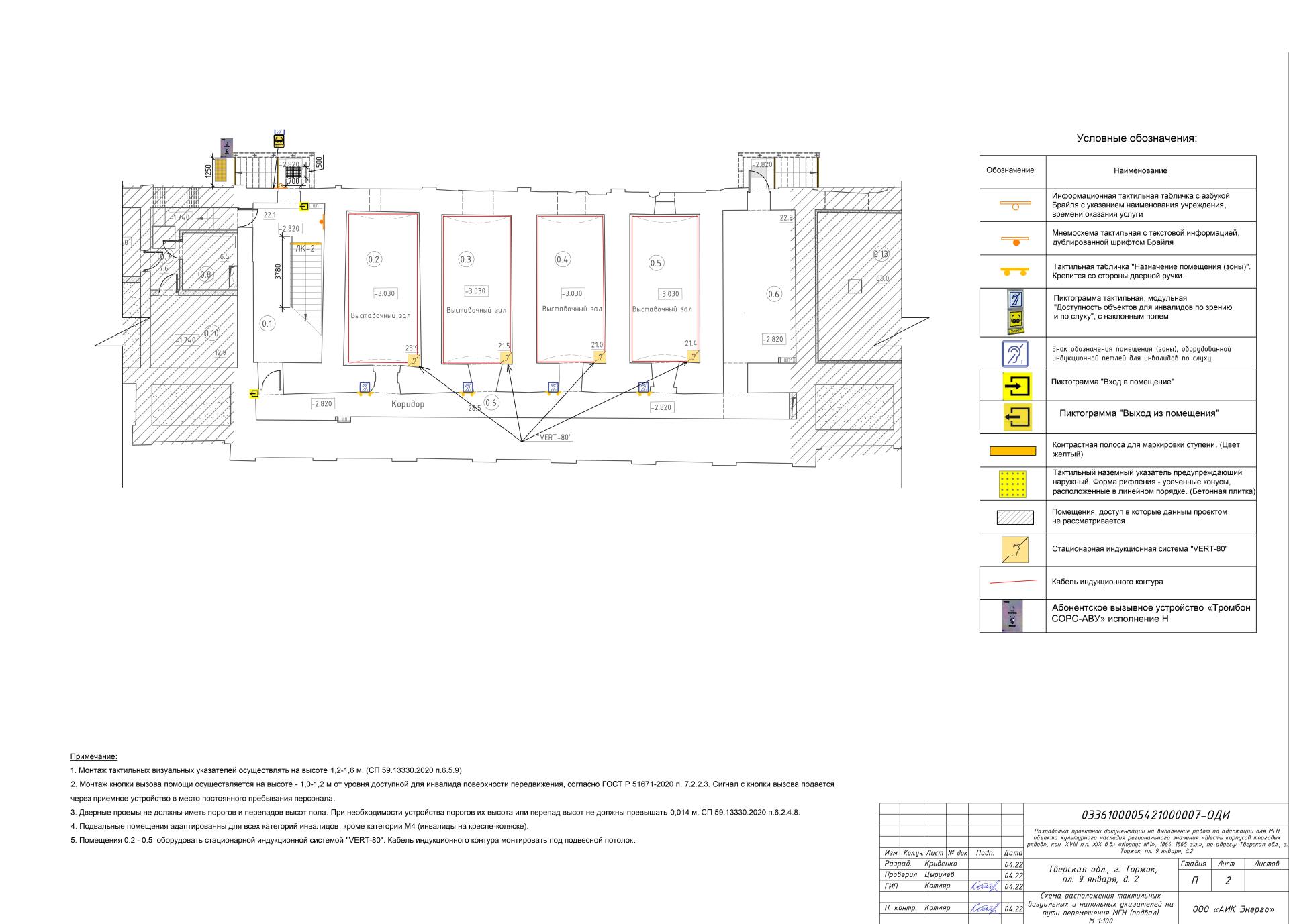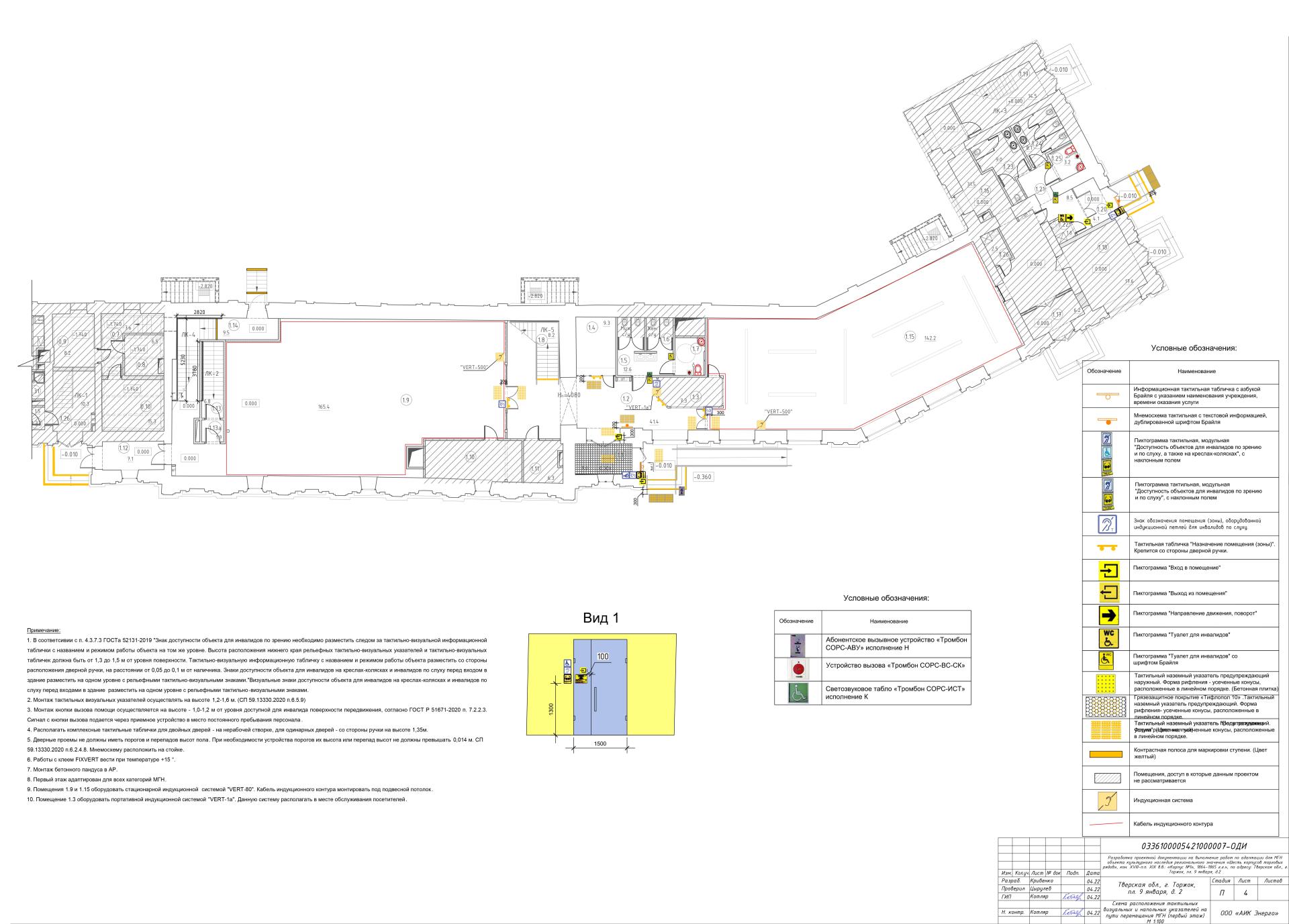Тактильная мнемосхема для первого этажа должна быть выполнена в соответствии с пунктом 2.3 и листом 4 группы части 0В00-000049-ОДИ и установлена на соответствующей высоте.