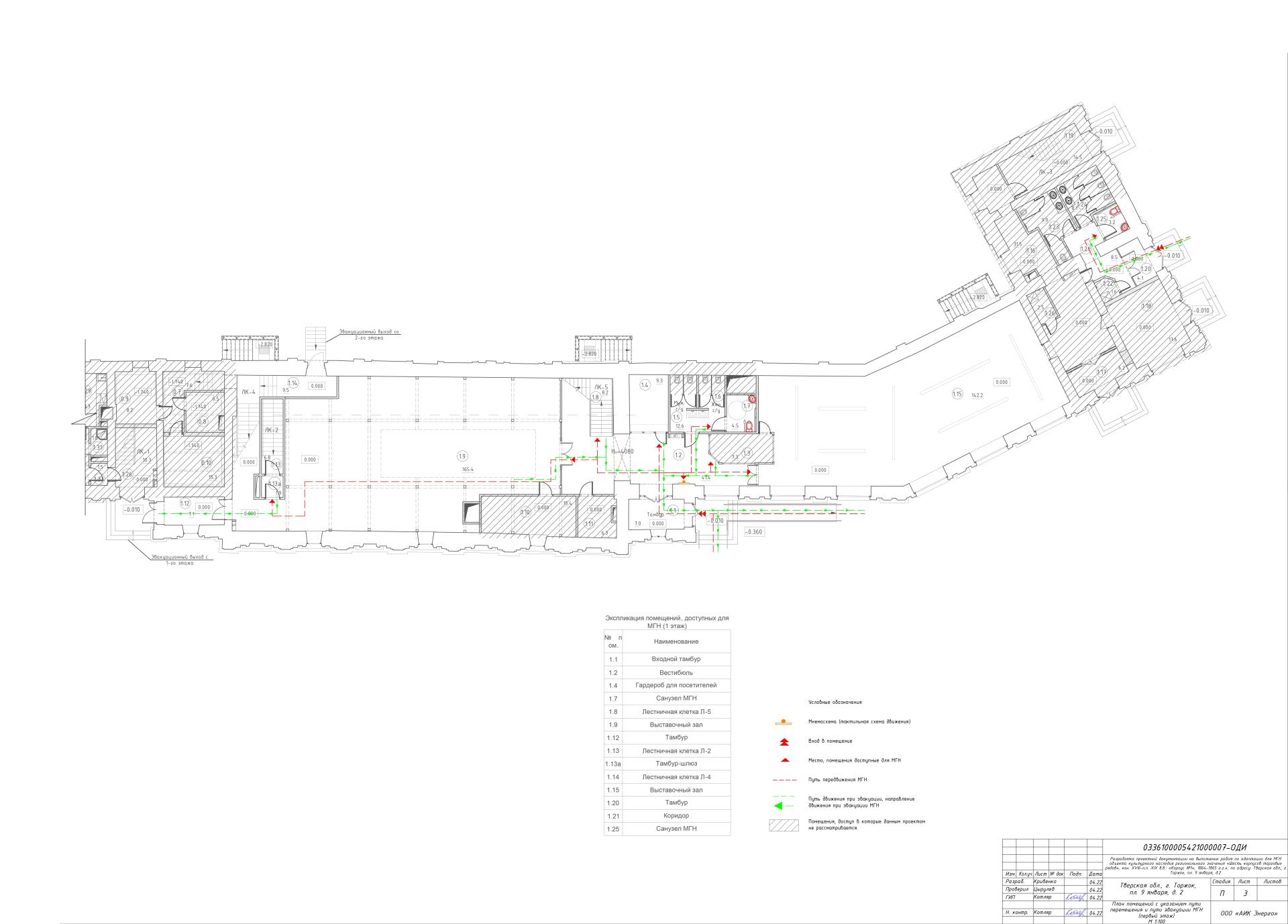 Настоящий проект разработан с целью обеспечения беспрепятственного доступа для людей с ограниченными возможностями и маломобильных групп населения (МГН) к помещению ФГБУК "ВИЭМ" на основе принципа "разумного приспособления". ФГБУК "ВИЭМ" расположен по адресу: Тверская область, г. Торжок, пл. 9 Января, д. 2.