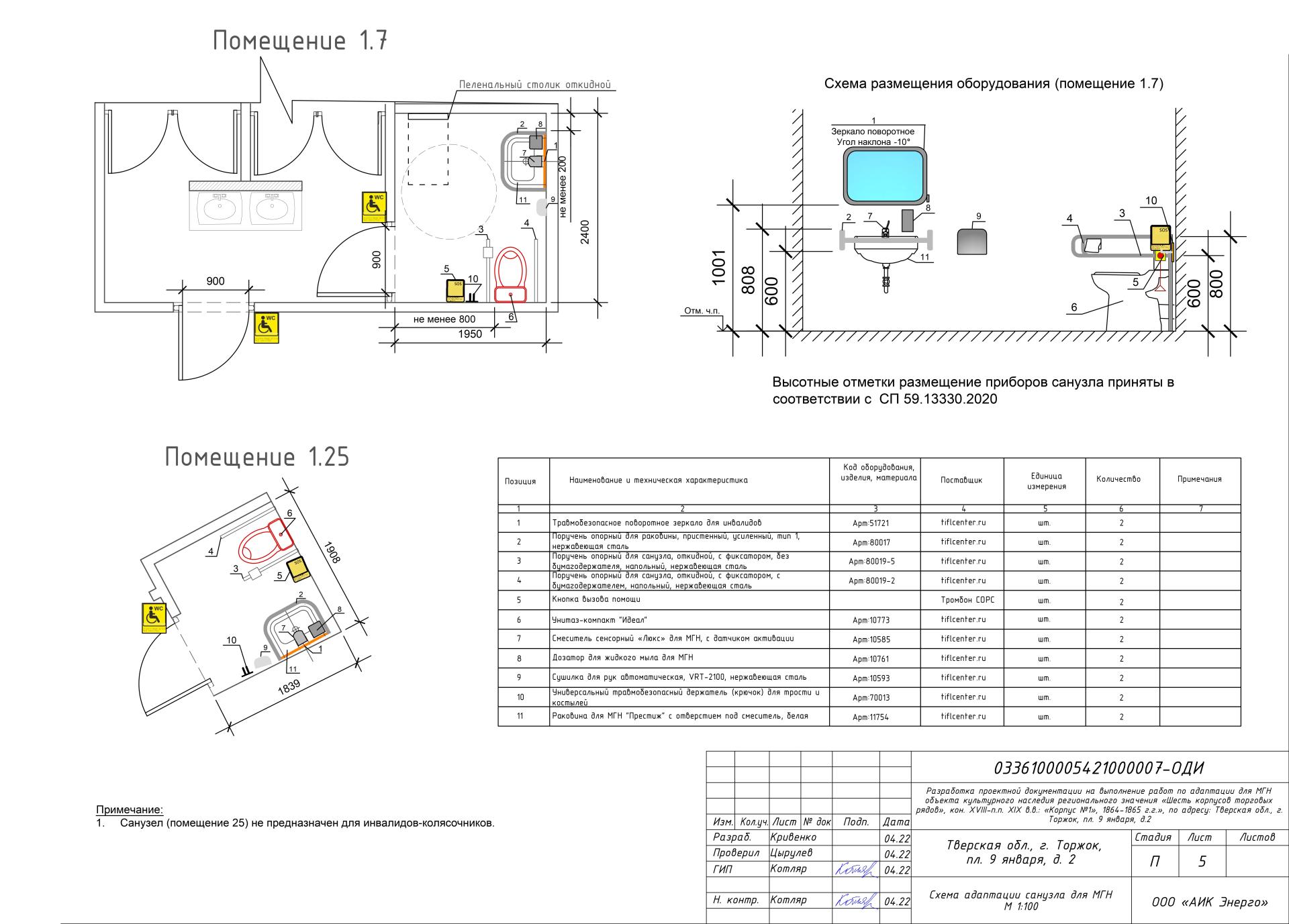 - Монтаж откидных поручней, соответствующих требованиям СП 59.13330.2020.
