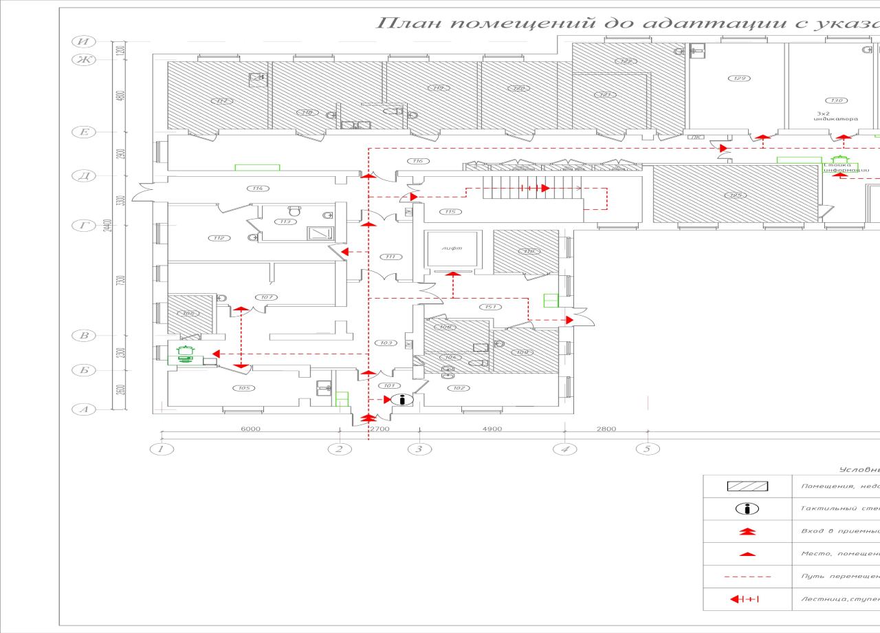 - Проект предусматривает тактильные визуальные указатели на путях перемещения МГН. Эти знаки включают тактильные визуальные таблички с дублированием информации шрифтом Брайля, тактильные мнемонические диаграммы с планом и назначением помещений, тактильные пиктограммы модели "Доступность объектов для людей с ограниченными возможностями по зрению и слуху, а также в инвалидных колясках", тактильные значки "Кнопка вызова помощи", тактильные пиктограммы "Вход в комната" и тактильные пиктограммы "Выход из комнаты".