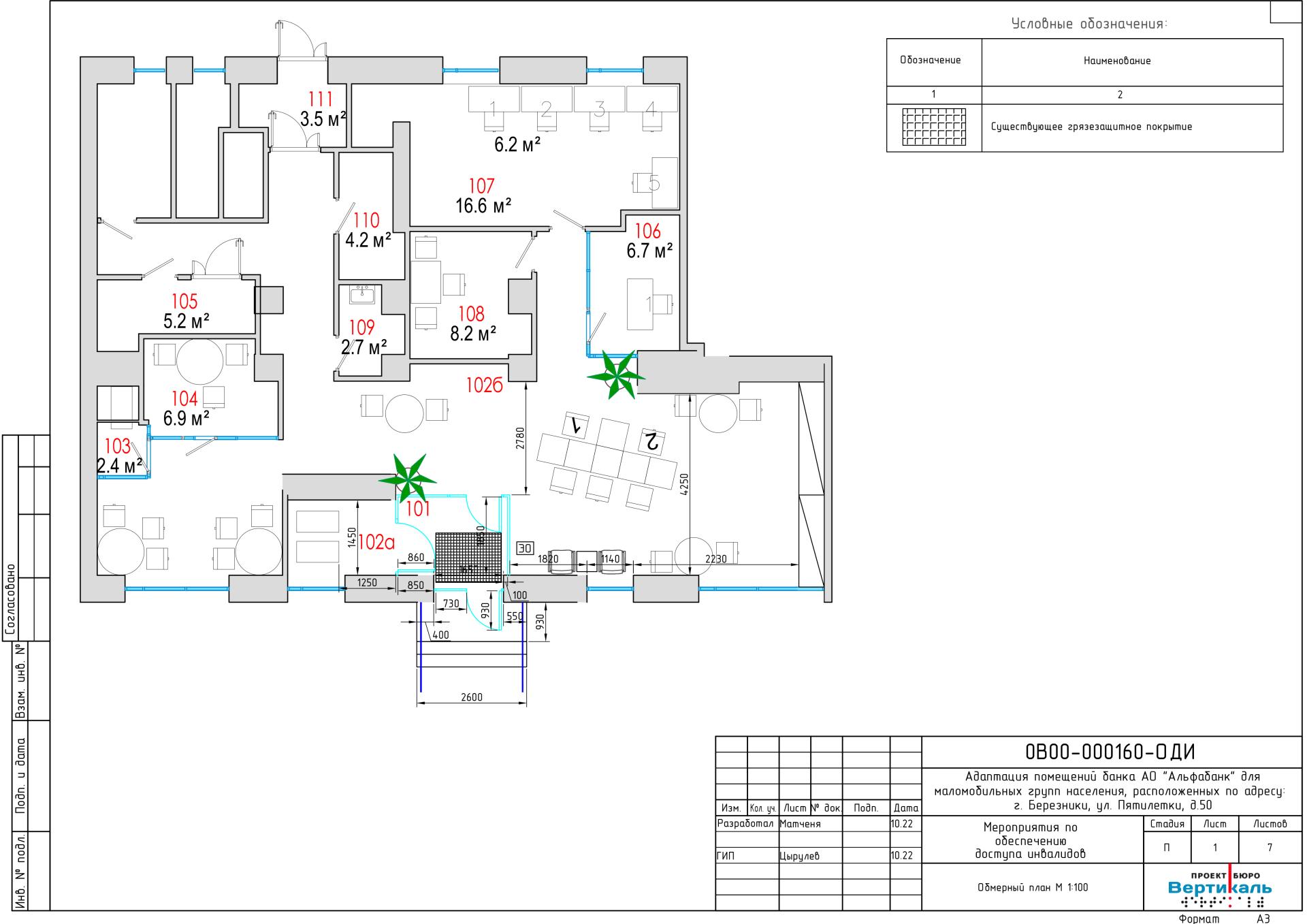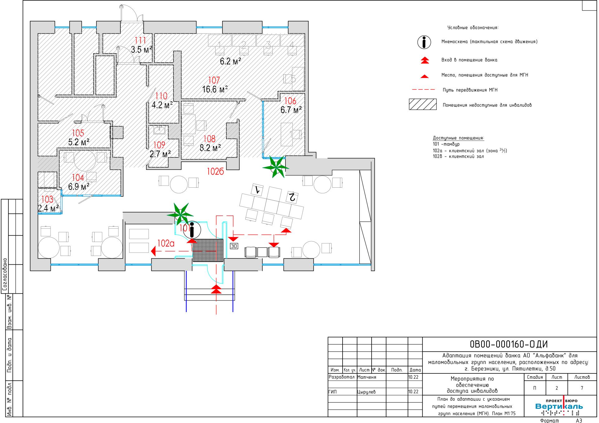 Проект направлен на обеспечение доступности помещений банка для людей с ограниченными возможностями и маломобильных групп населения на основе принципа "разумного размещения". Проектная документация основана на технических заданиях на проектирование, исходных данных, предоставленных заказчиком, результатах обследования и действующих строительных нормах и предписаниях. Проект предусматривает меры по улучшению качества архитектурной среды, включая доступность целевых мест, беспрепятственное передвижение внутри помещений банка и своевременное получение полноценной и высококачественной информации. Эти меры не ограничивают условия жизни и не ущемляют возможности других групп в банке.