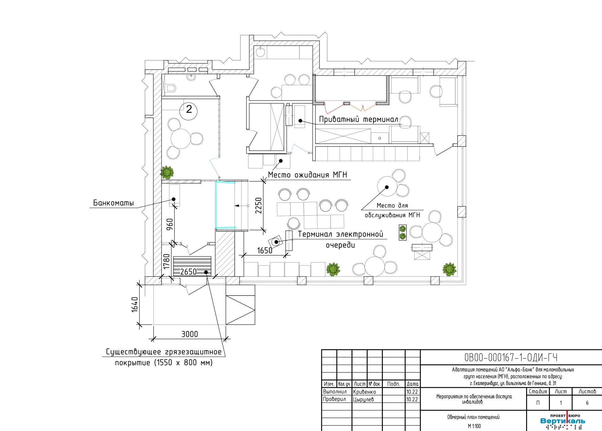 Настоящий проект разработан с целью обеспечения безбарьерного доступа для людей с ограниченными возможностями и маломобильных групп населения (МГН) в помещения банка.