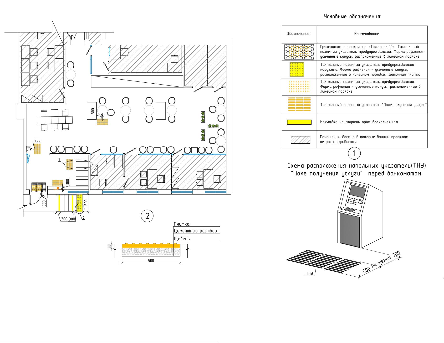 В целом, эти меры способствуют обеспечению доступности банковских помещений для людей с ограниченными возможностями и маломобильных групп населения, позволяя им перемещаться и ориентироваться в пространстве банка без препятствий.