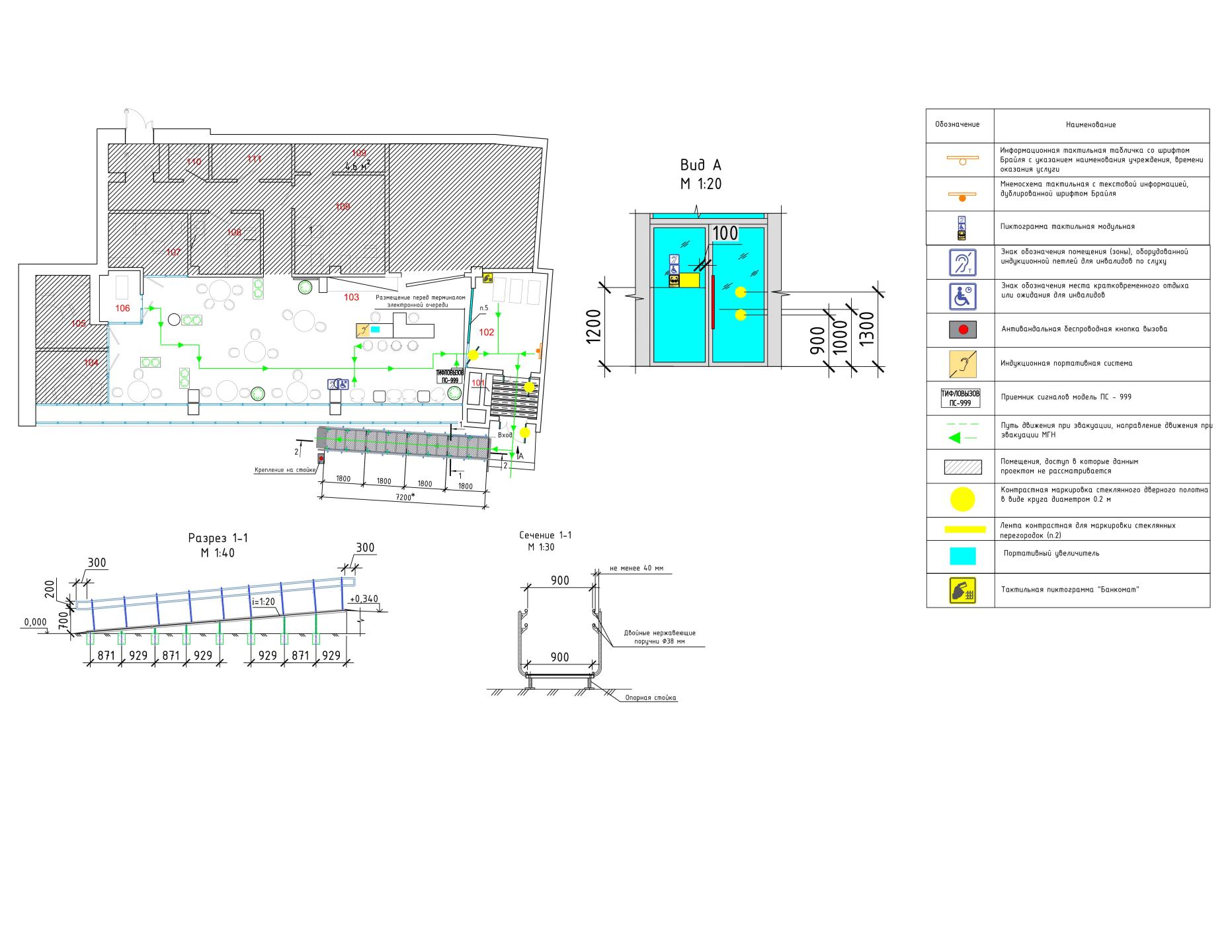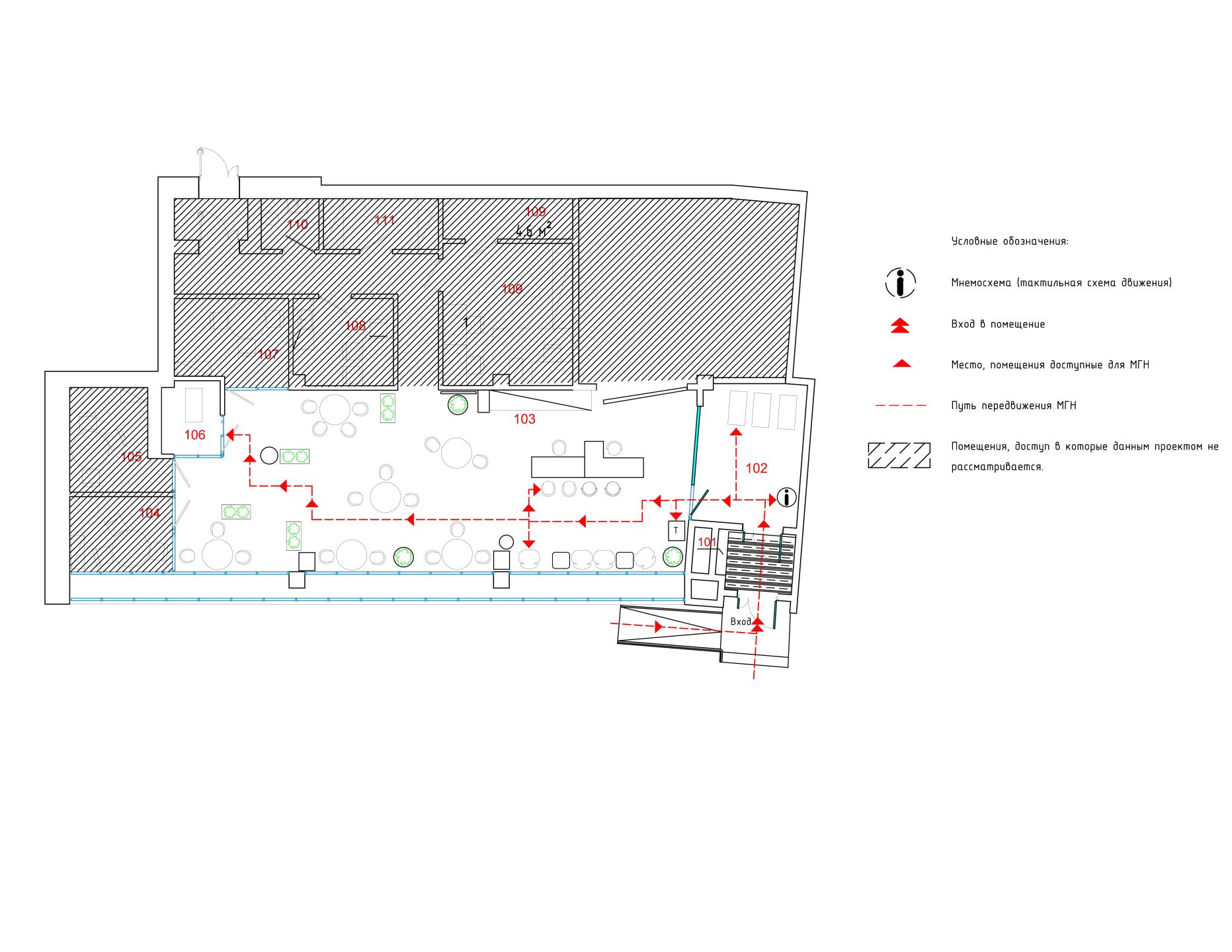 Проектные решения не ограничивают условия для других групп населения, находящихся в помещении банка. После реализации предложенных мероприятий будет обеспечена возможность беспрепятственного перемещения инвалидов групп мобильности М1-М4 от входа в здание до внутренних помещений. Также будут установлены тактильные настенные указатели для направления МГН.