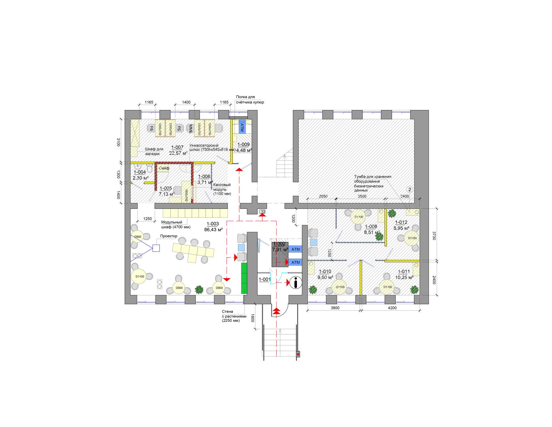 Эти проектные решения не ограничивают условия жизнедеятельности и возможности других групп населения, присутствующих в банковском помещении. После реализации мероприятий, предусмотренных проектом, инвалиды групп мобильности М1-М3 смогут свободно перемещаться от входа в здание до внутренних помещений. Для инвалидов группы мобильности М4 доступ обеспечивается с помощью сотрудника банка.