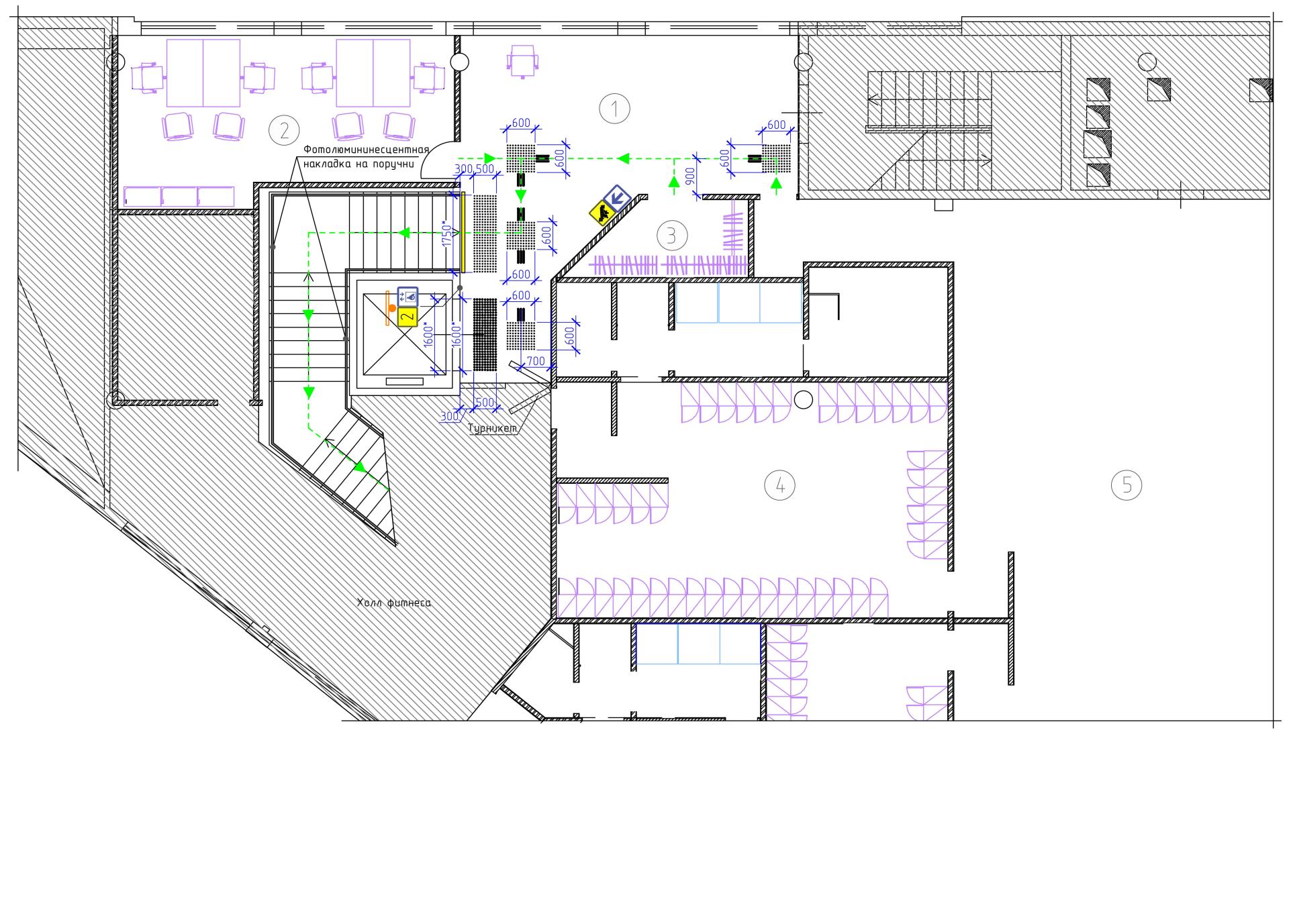 Тактильные настенные указатели на путях перемещения МГН. В соответствии с требованиями СП59.13330.2020, в местах массового посещения необходимо установить технические средства информирования, ориентирования и сигнализации, чтобы обеспечить посетителям объекта четкую информацию о его объектах и местах, размещении и назначении функциональных элементов, а также надежную ориентацию в пространстве. В рамках данного проекта предусмотрено установить тактильные визуальные указатели на путях перемещения МГН.