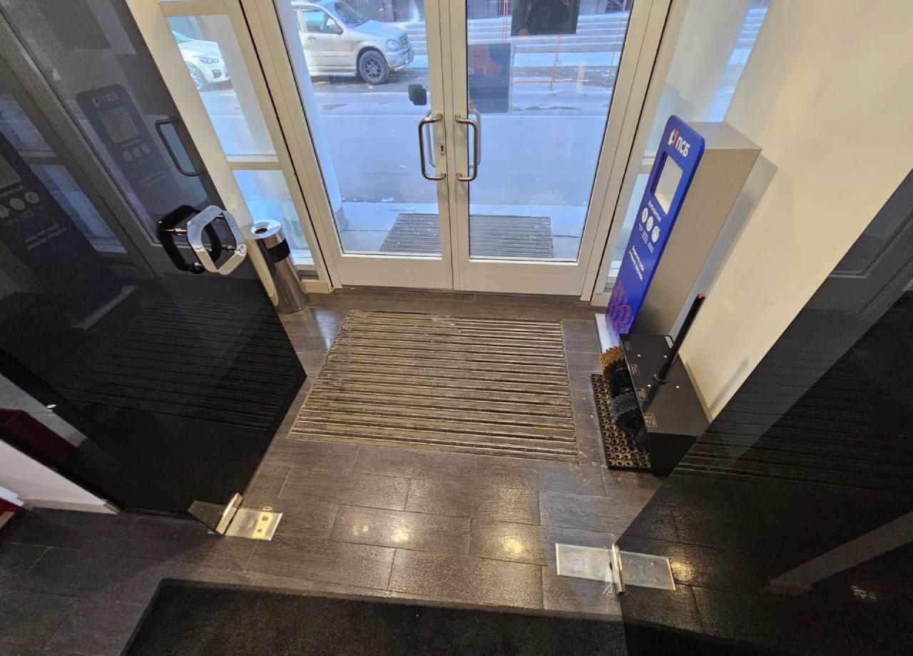 Проектом предусмотрена контрастная маркировка в форме круга диаметром 0,2м на входной двери и на двери тамбура. На входной двери маркировку нанести на одном уровне (0,9 м до центра), на двери тамбура маркировку нанести на двух уровнях (0,9 и 1,4 м до центра).