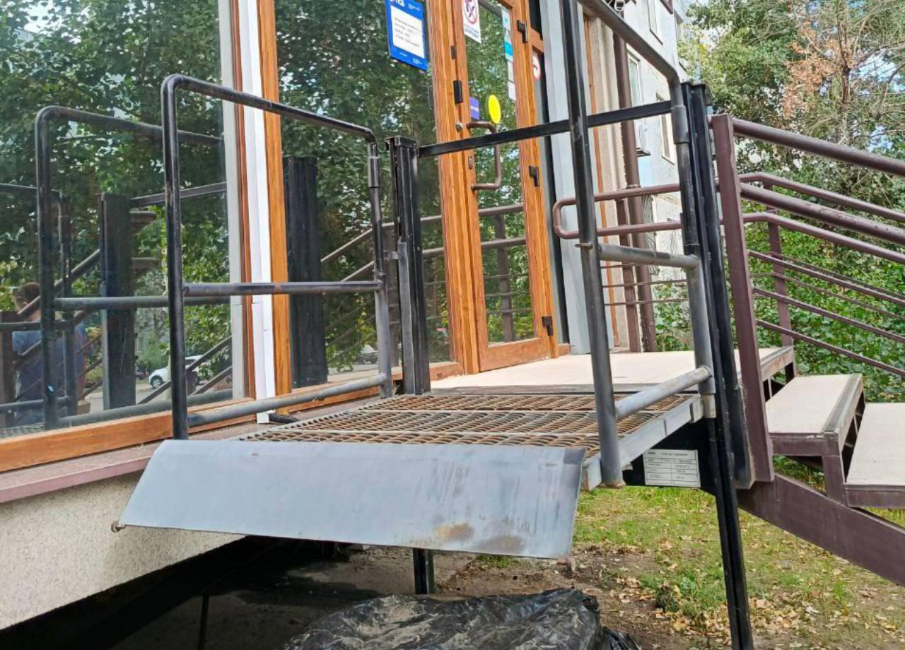 Проектом предусмотрена установка кнопки вызова персонала. Кнопка устанавливаются возле заезда на пандус. Необходимо привести ступени лестницы в соответствие нормам. Согласно п. 5.1.12 СП 59.13330.2020: все ступени лестниц в пределах одного марша должны быть одинаковыми по форме в плане, по размерам ширины проступи и высоты подъема ступени. Проектом приняты следующие размеры: ширина проступи 0,3 м и высота подъема 0,13 м. Рекомендовано привести лестницу в соответствие нормам п. 5.1.12 СП 59.13330.2020.