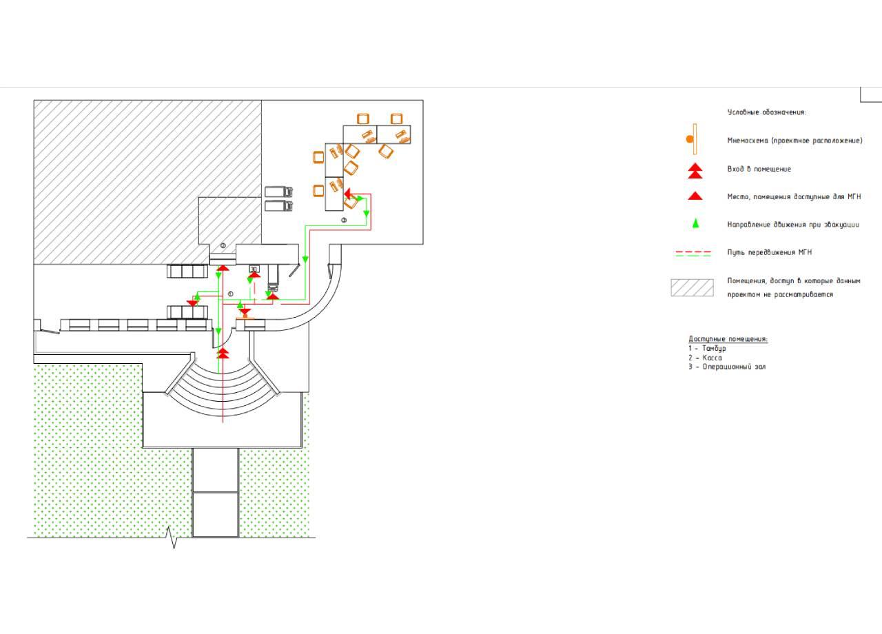 После реализации мероприятий, предусмотренных проектом, будет обеспечиваться возможность безбарьерного следования инвалидов групп мобильности М1-М3 от входа здания к внутренним помещениям. Для инвалидов категории мобильности М4 доступ в помещение банка осуществляется при помощи сотрудника банка.