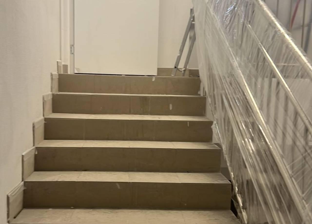 На Объекте имеется внешняя лестница шириной 6,0 м. Высота ступеней 170 мм, ширина проступей 300 мм. Лестница двухмаршевая, в каждом марше по 3 ступени, между маршами предусмотрена горизонтальная площадка глубиной 1500 мм. Необходимо, согласно п.5.1.12 СП 59.13330.2020, ширину проступей принять от 0,35 до 0,4 м (или кратно этим значениям), высоту ступеней – от 0,12 до 0,15 м. Все ступени лестницы в пределах одного марша должны быть одинаковыми по форме в плане, по размерам ширины проступи и высоты подъема ступеней. Поперечный уклон ступеней должен быть не более 20 ‰.