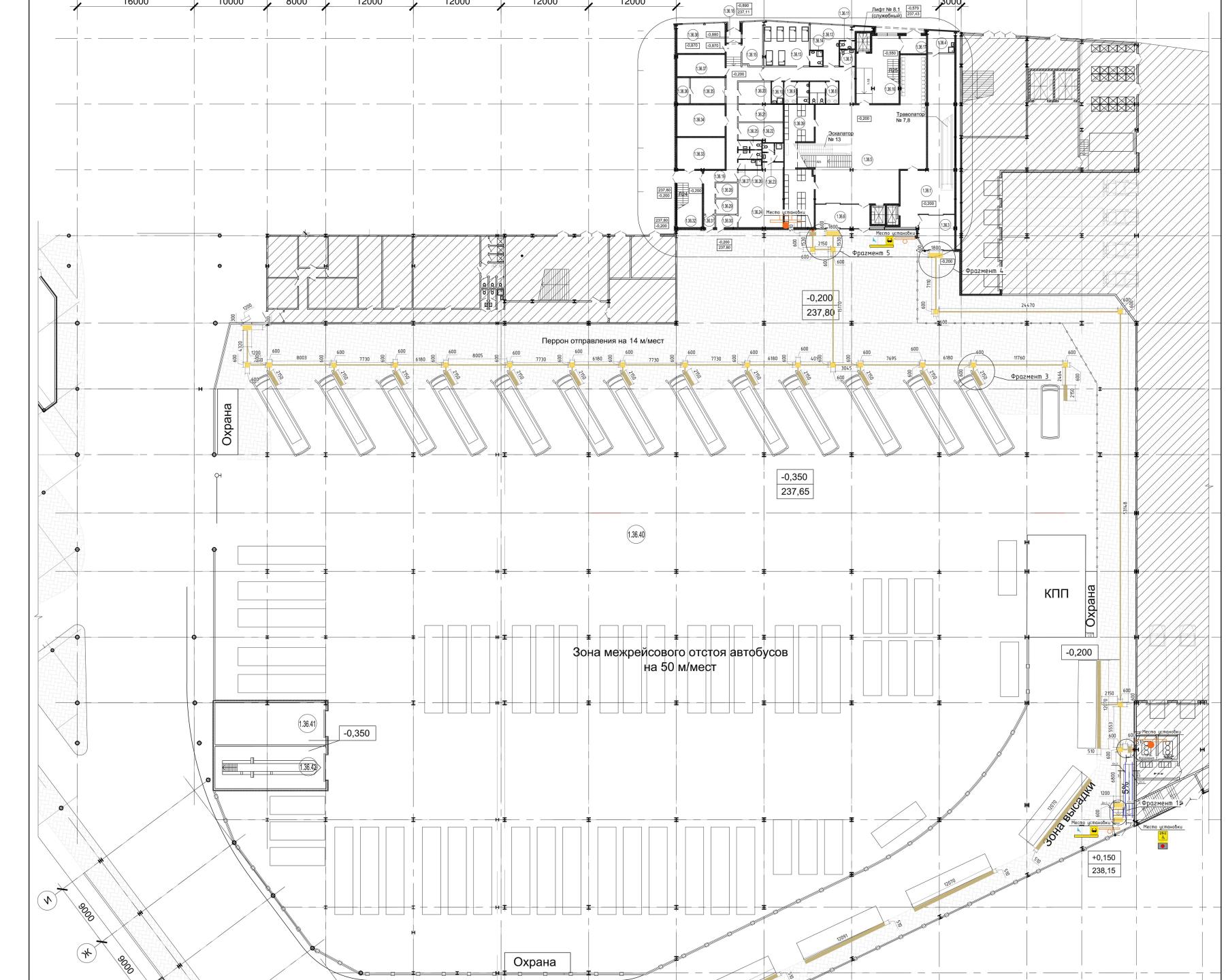 В проекте адаптируются два этажа здания автовокзала, предназначенных для обслуживания пассажиров. Подъем на второй этаж осуществляется с помощью лифтов.