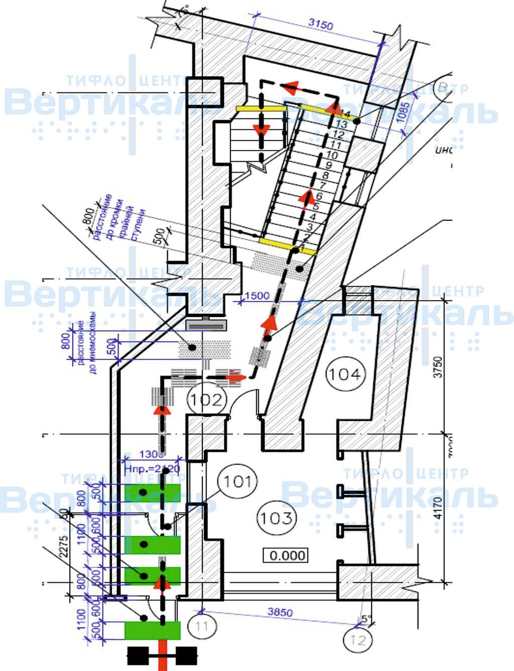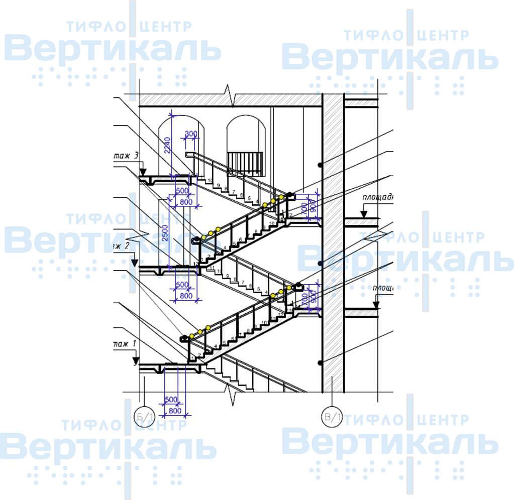 - предусмотрены тактильные наклейки на поручни об окончании перил;