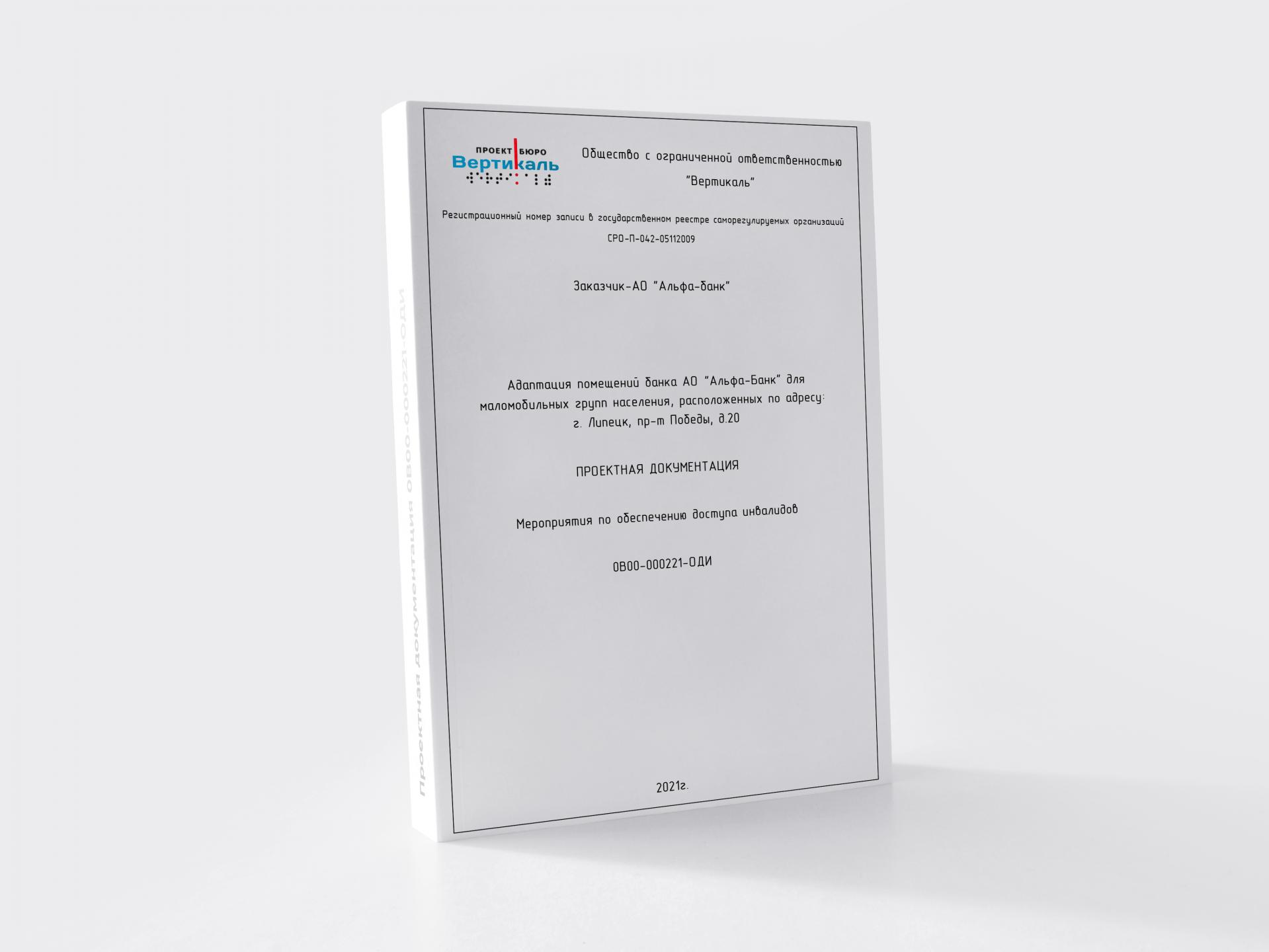 Настоящий проект разработан в целях обеспечения беспрепятственного доступа к помещениям банка для людей с ограниченными возможностями и маломобильных групп населения (МГН) по принципу «разумного приспособления». Адаптируется эксплуатируемое помещение банка, расположенное по адресу: г. Липецк, пр-т Победы, д.20.