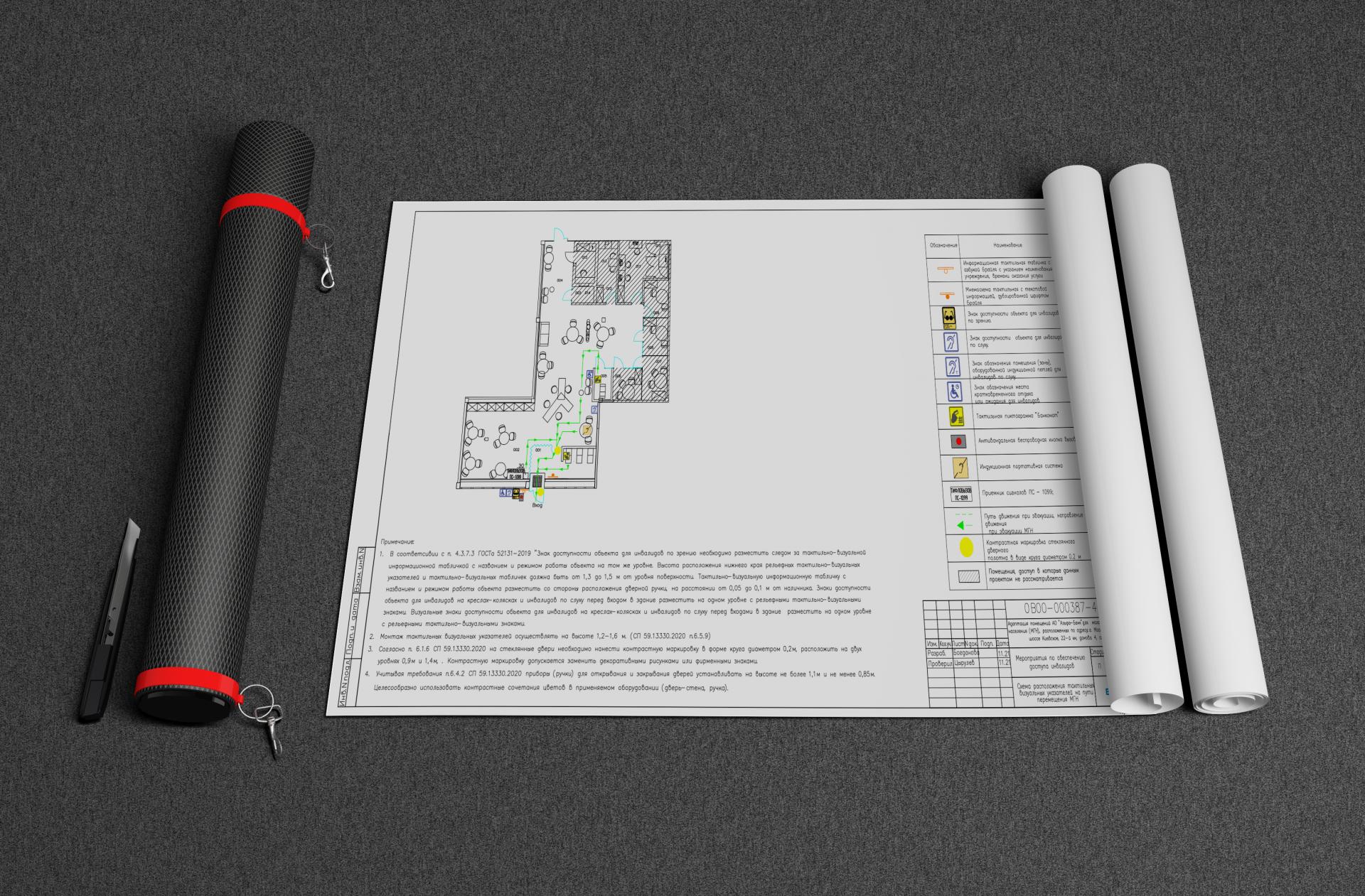 - Тактильная визуальная табличка с дублированием информации по системе Брайля