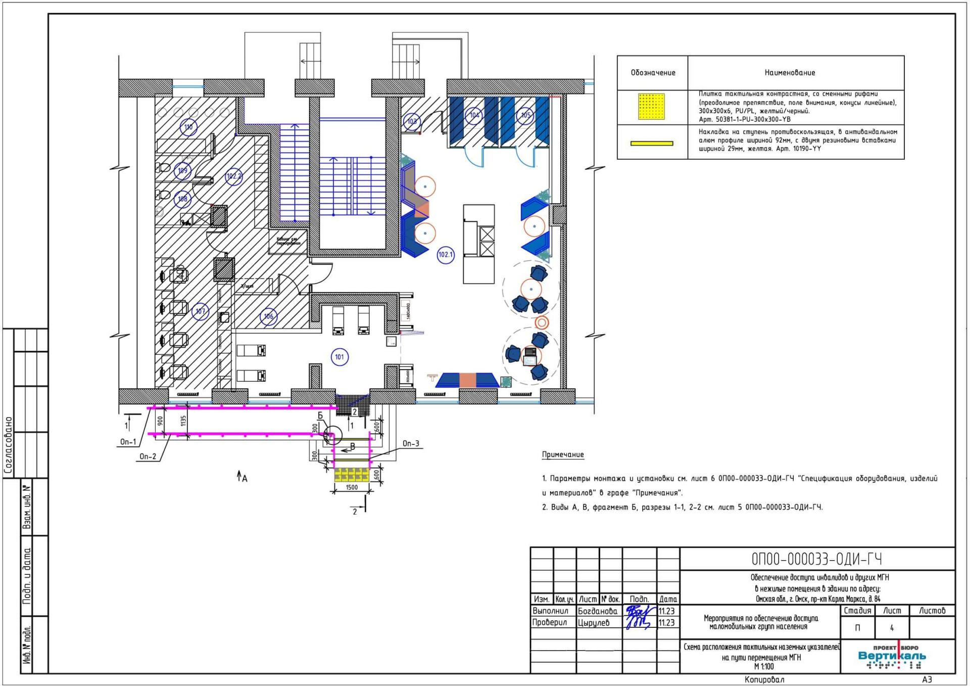 Настоящий проект разработан компанией «Вертикаль» в целях обеспечения беспрепятственного доступа инвалидов и других маломобильных групп населения (МГН) согласно принципу «разумного приспособления» к помещениям стоющегося офис Банка «ВТБ» в здании по адресу: Омская обл., г. Омск, пр-кт Карла Маркса, д. 84.