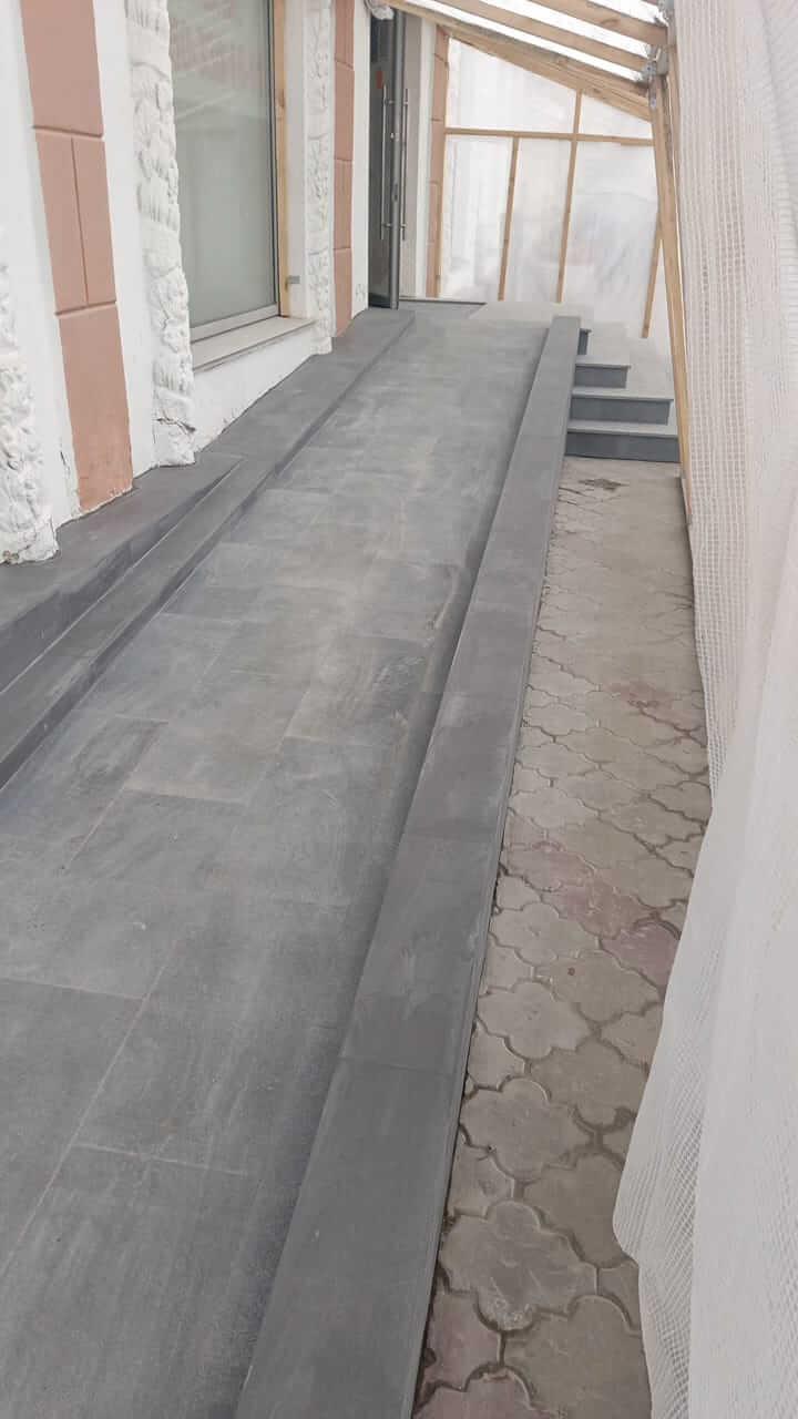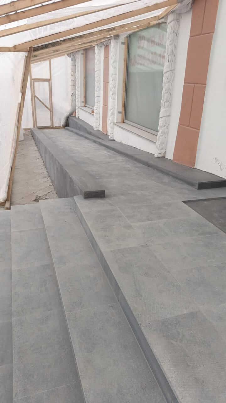 Поверхность покрытия крылец (входная группа) должна быть не скользкой, допустимый коэффициент сцепления в условиях сырой погоды и отрицательных температур должен быть не менее 0,4.