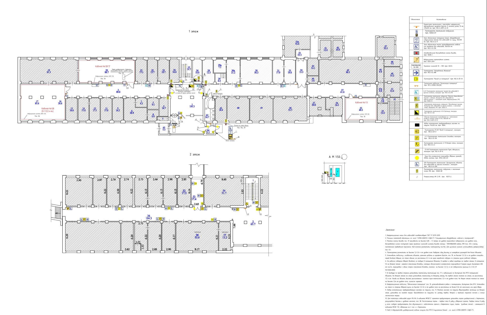 Проектом предусмотрены визуальные и тактильно-визуальные указатели. Их можно увидеть на приложенных эскизах.