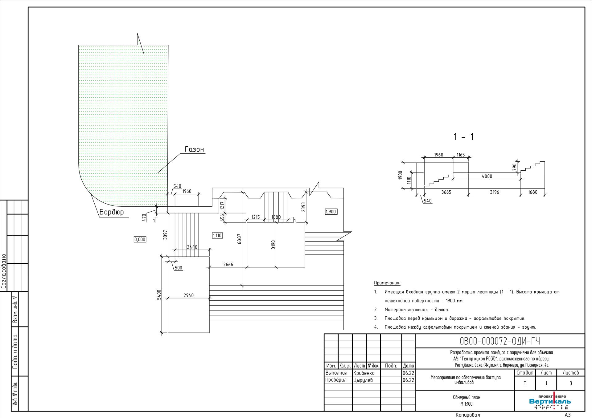 Разработка проекта пандуса с поручнями для объекта АУ "Театр кукол РС(Я)"