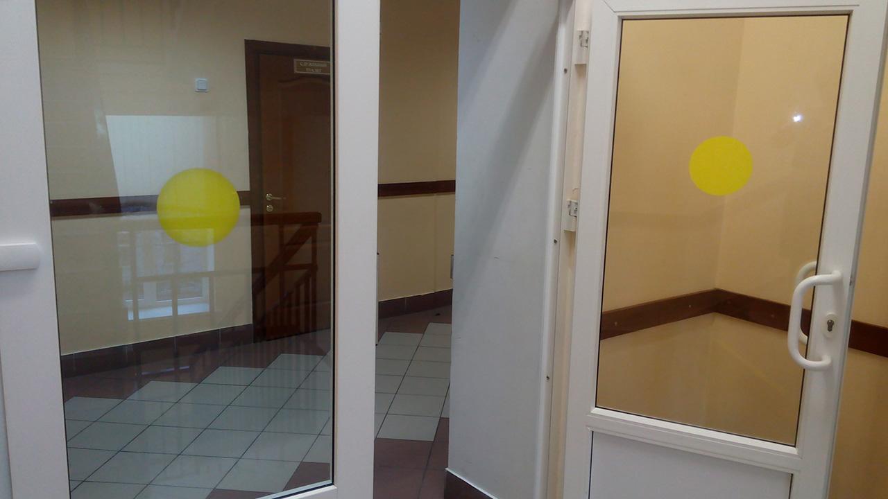 Особое внимание уделяется безопасности при использовании стеклянных дверей и перегородок, которые представляют серьезную угрозу для слабовидящих. Пункт 6.1.6 свода правил обязывает размещать на прозрачных полотнах дверей, ограждениях и перегородках яркую контрастную маркировку. Она должна выполняться в форме прямоугольника высотой не менее 0,1 м и шириной не менее 0,2 м или в форме круга диаметром от 0,1 до 0,2 м. Размещается такая маркировка на двух уровнях: 0,9–1,0 м и 1,3–1,4 м от уровня пола, что обеспечивает ее видимость для людей разного роста и тех, кто передвигается на креслах-колясках.
